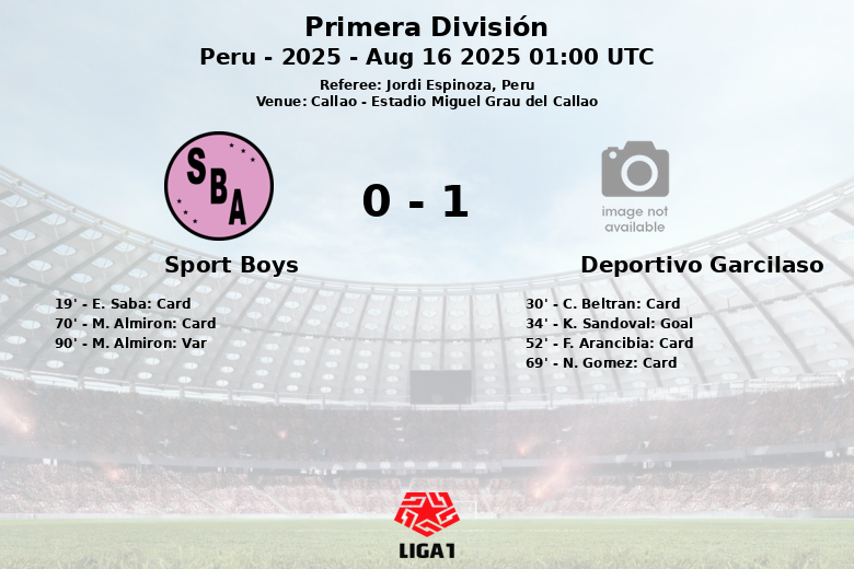 Remplacements dans l’quipe de sport boys: À la 59e minute, A. Solis est entré et J. Rios est sorti., À la 59e minute, E. Saba est entré et O. Mora est sorti., À la 61e minute, L. Urruti est entré et F. Martinez est sorti., À la 74e minute, J. Alarcon est entré et F. Roca est sorti.