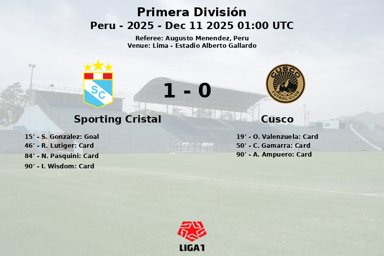 Sporting Cristal a ouvert le score tôt à la 15e minute grâce à un but de S. Gonzalez, sur une passe décisive de G. Cazonatti. Bien que Cusco ait dominé la possession avec 61 % contre 39 % pour Sporting Cristal, ils n’ont pas réussi à transformer leurs occasions en buts.