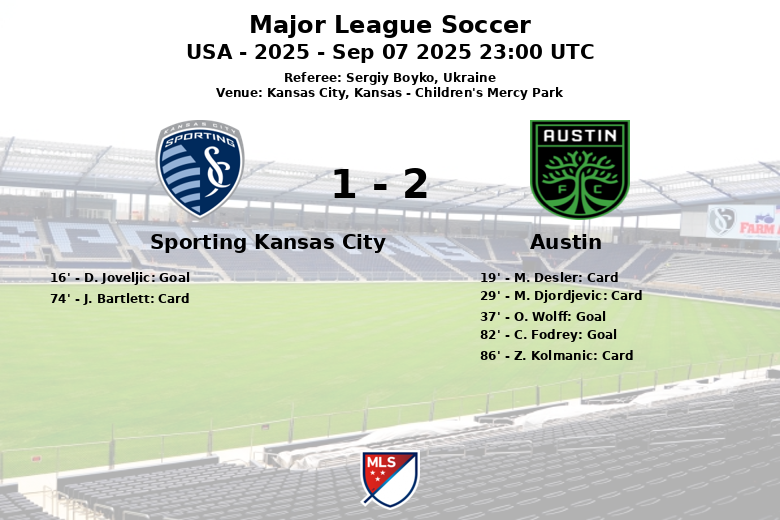Kansas City, Kansas – Dans un match disputé au Children’s Mercy Park, Austin FC a remporté la victoire contre le Sporting Kansas City avec un score final de 2-1. Le match, comptant pour la 29e journée de la saison régulière de la Major League Soccer, a été intense et caractérisé par la domination de la possession de balle par l’équipe locale, qui a profité de 62% de possession.