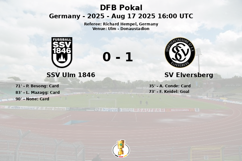 Ulm, Allemagne – Dans un match vibrant du premier tour de la DFB Pokal, le SV Elversberg a remporté une victoire importante face au SSV Ulm 1846 au Donaustadion. Le match, disputé le 17 août 2025, a été caractérisé par un jeu physique et stratégique.