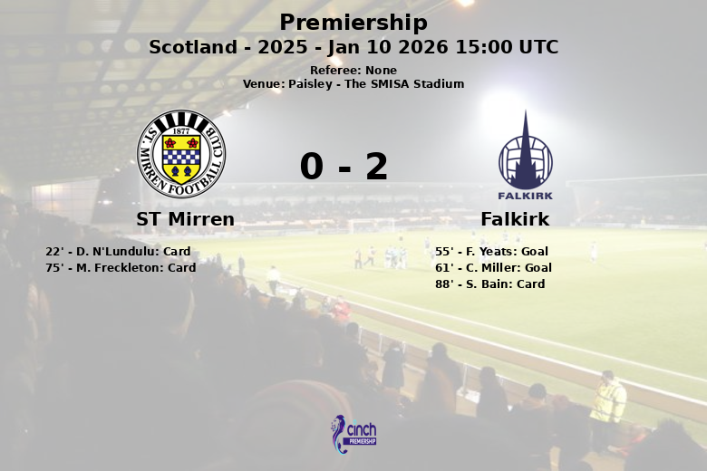 Paisley, Écosse – Dans un match qui s’est déroulé au The SMISA Stadium, Falkirk a dominé St Mirren avec une victoire qui ne laissait que peu de place au doute. Le match, correspondant à la 22e journée de la Premiership écossaise, a été caractérisé par la domination de Falkirk en termes de possession, avec 63% contre 37% pour St Mirren.