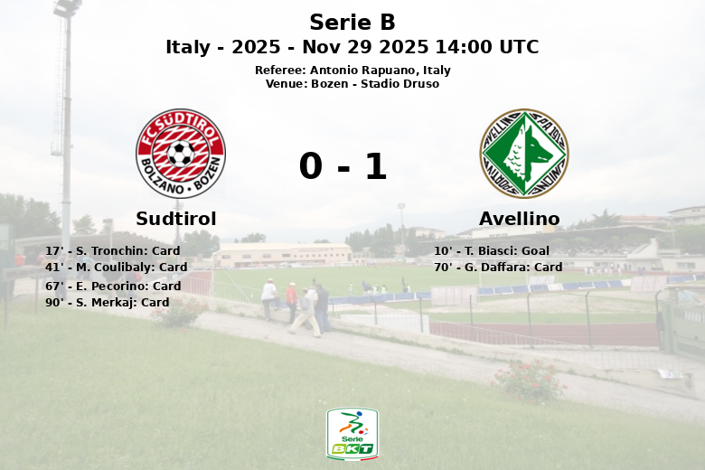 Bozen, Italie – Dans un match acharné au Stadio Druso, Avellino a remporté une précieuse victoire contre Sudtirol lors de la 14e journée de Serie B. Le seul but du match, marqué par T. Biasci à la 10e minute, sur une passe de M. Palumbo, s’est avéré suffisant pour faire pencher la balance en faveur de l’équipe visiteuse.