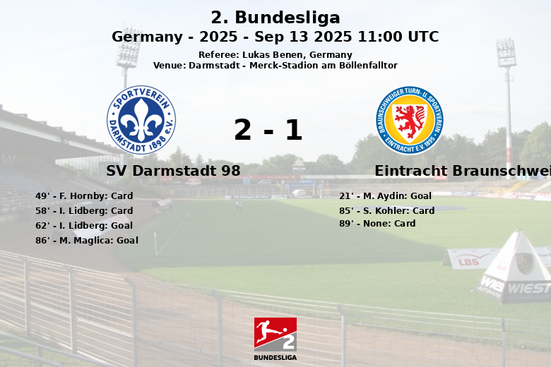 L’Eintracht Braunschweig a pris l’avantage à la 21e minute grâce à un but de M. Aydin, sur une passe de R. Heusser, faisant preuve d’une bonne efficacité dans les premières minutes du match. Cependant, Darmstadt 98 n’a pas reculé et, après une première mi-temps relativement calme, I. Lidberg a égalisé à la 62e minute. Le match est devenu encore plus tendu dans les dernières minutes.