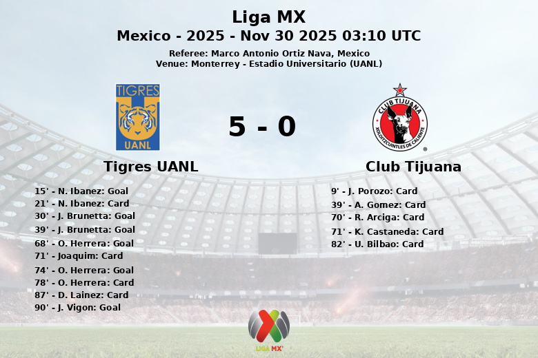 Tigres UANL vs Club Tijuana Nov 30 2025 03:10 UTC