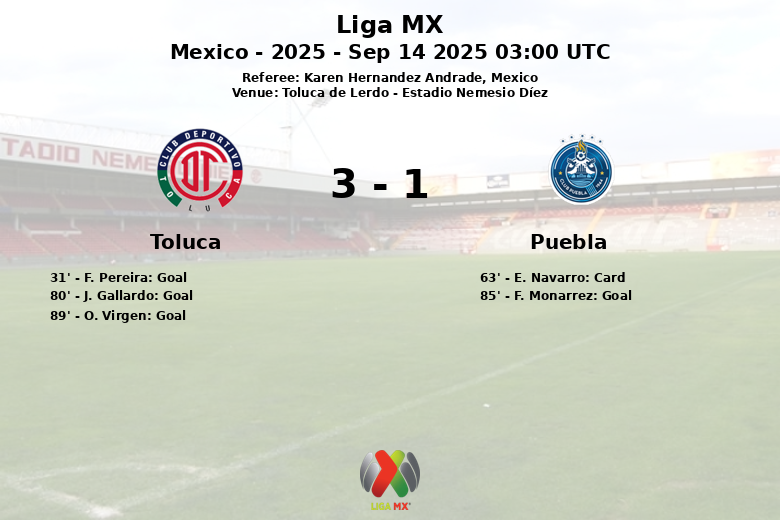 Toluca vs Puebla Sep 14 2025 03:00 UTC