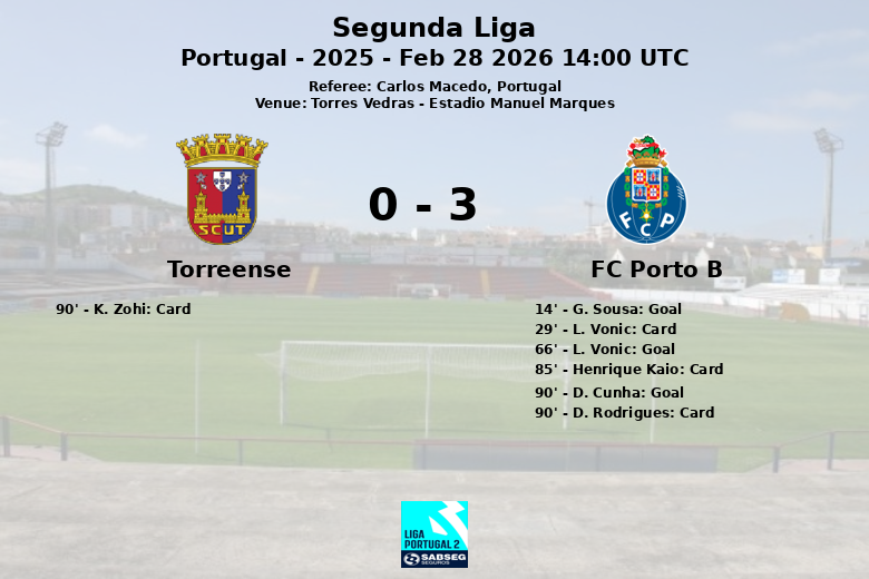 Torres Vedras, Portugal – Dans une rencontre vibrante disputée à l’Estadio Manuel Marques, le FC Porto B a remporté une victoire importante contre Torreense lors de la 24e journée de la Segunda Liga portugaise. Le match, arbitré par Carlos Macedo, s’est caractérisé par un rythme intense et des moments de tension.