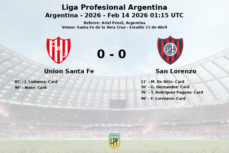 Santa Fe de la Vera Cruz a été le théâtre d’un match disputé et sans but entre Unión et San Lorenzo au stade 15 de Abril, comptant pour la cinquième journée de la Ligue Professionnelle Argentine 2026. Le match, arbitré par Ariel Penel, a été caractérisé par une forte intensité et des frictions au milieu de terrain.