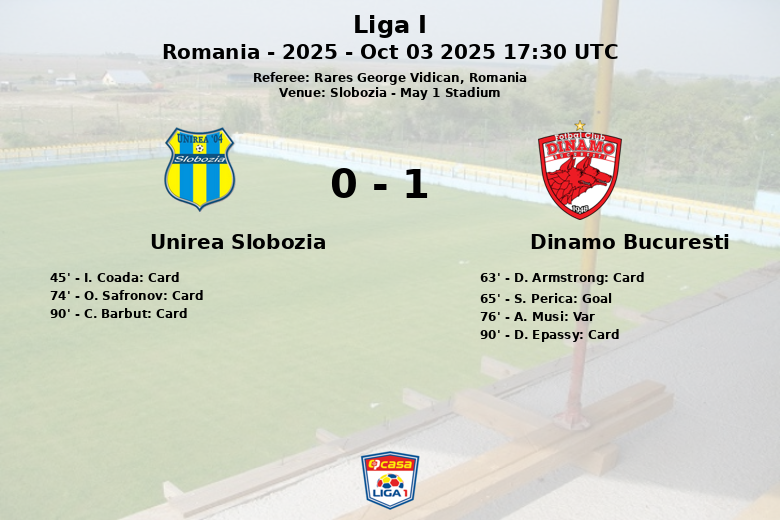 Slobozia, Roumanie – Lors d’un match disputé au May 1 Stadium, Dinamo Bucuresti a battu Unirea Slobozia sur le score de 1 à 0. La rencontre, comptant pour la 12e journée de Liga I, a été marquée par une intensité et une lutte au milieu de terrain.