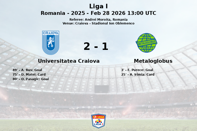 Universitatea Craiova vs Metaloglobus Feb 28 2026 13:00 UTC