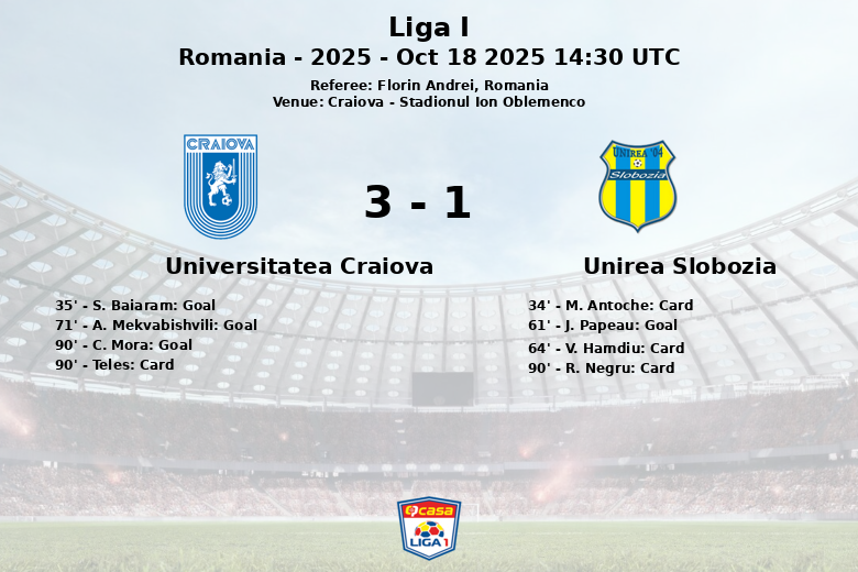 Universitatea Craiova vs Unirea Slobozia Oct 18 2025 14:30 UTC