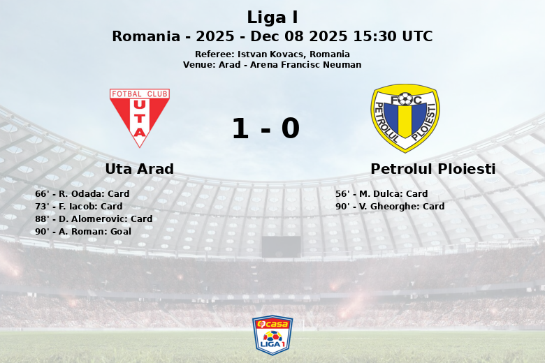 Arad, Roumanie – Dans un match disputé à l’Arena Francisc Neuman, Uta Arad a décroché une victoire dramatique contre Petrolul Ploiesti à la 90e minute, grâce à un but de A. Roman. La rencontre, comptant pour la 19e journée de Liga I, a été marquée par une lutte intense au milieu de terrain et un léger avantage territorial pour Uta Arad, qui a bénéficié de 55% de la possession du ballon.