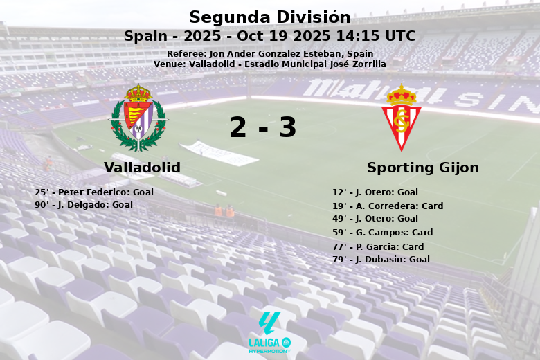 Sporting Gijon a pris une avance rapide à la 12e minute avec un but de J. Otero, assisté par J. Dubasin. Cependant, Valladolid a réagi et a égalisé à la 25e minute grâce à Peter Federico. La première mi-temps a également été marquée par un carton jaune pour A. Corredera de Sporting Gijon.