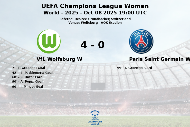 VfL Wolfsburg W vs Paris Saint Germain W Oct 08 2025 19:00 UTC