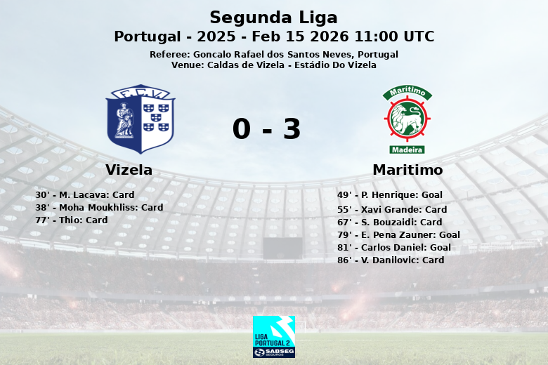Dans un match disputé à l’Estádio Do Vizela, Marítimo a triomphé de Vizela grâce à une solide performance qui a abouti à une victoire convaincante. Le match, correspondant à la 22e journée de la Segunda Liga portugaise, a été marqué par une intensité notable et un déploiement tactique qui a clairement favorisé l’équipe visiteuse.