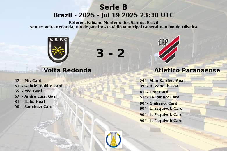La deuxième mi-temps a été un véritable tourbillon. André Luiz a égalisé à la 67e minute, sur une passe de Pierre, donnant des ailes à Volta Redonda. Italo a complété le retournement de situation à la 81e minute, sur une passe de PK, déclenchant l’euphorie chez les supporters locaux. Le match a été caractérisé par un jeu intense, reflété par les nombreux cartons jaunes montrés aux deux équipes, et s’est terminé par un carton rouge pour L. Esquivel de l’Atlético Paranaense dans le temps additionnel.