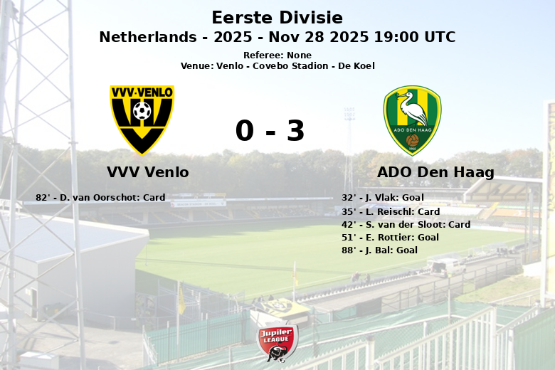 Bien que VVV Venlo ait commis moins de fautes (7) que l’ADO Den Haag (17), et n’ait reçu qu’un seul carton jaune (D. van Oorschot à la 82e minute), ils n’ont pas pu concrétiser leurs occasions. L’ADO Den Haag a fait preuve d’efficacité et de solidité, remportant une victoire importante à domicile. Le match, correspondant à la 18e journée de la saison régulière, laisse l’ADO Den Haag avec le sourire aux lèvres.