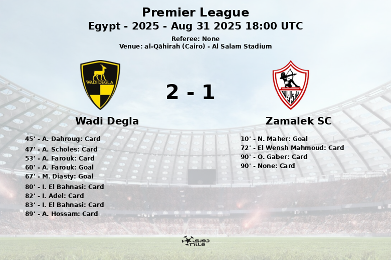 Wadi Degla vs Zamalek SC Aug 31 2025 18:00 UTC
