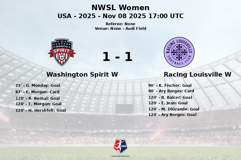 Le match est resté tendu jusqu’à la 73e minute, lorsque G. Monday, aidée par R. Kouassi, a ouvert le score pour le Spirit. La joie locale a été menacée dans le temps additionnel, lorsque K. Fischer a égalisé pour Louisville à la 90e minute, assistée par B. Balcer.