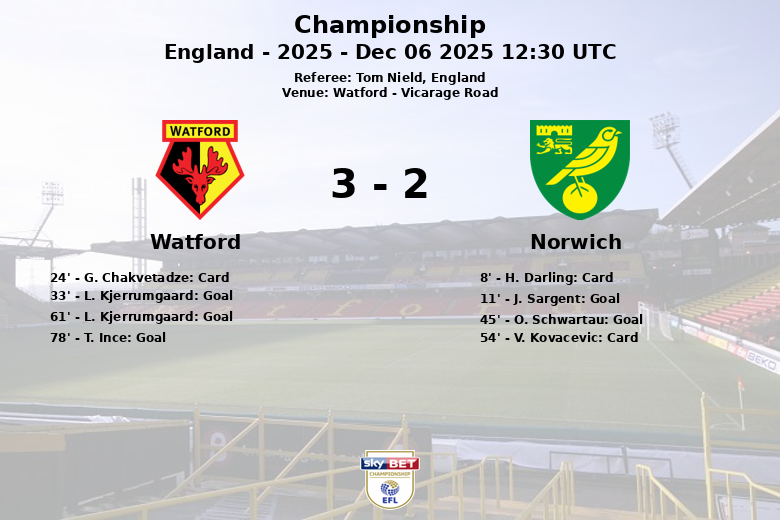 Watford vs Norwich Dec 06 2025 12:30 UTC