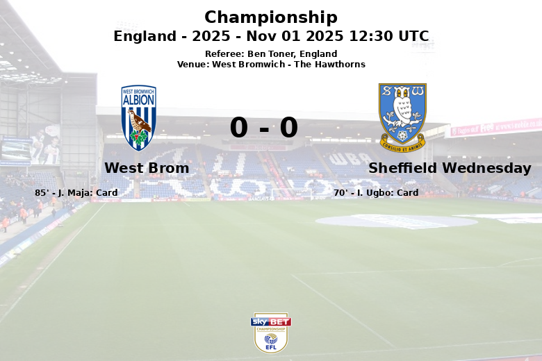 West Bromwich, Angleterre – Lors d’un match disputé à The Hawthorns, West Brom et Sheffield Wednesday ont fait match nul 0-0 lors d’un match de Championship, comptant pour la 13e journée. Le match, arbitré par Ben Toner, a été caractérisé par une forte possession de balle en faveur de West Brom (62%), bien que le manque de précision en attaque l’ait empêché de se refléter au tableau d’affichage. L’équipe locale a effectué 12 tirs, dont seulement 6 ont été cadrés. Sheffield Wednesday, de son côté, s’est replié et a cherché des occasions en contre-attaque, générant 5 tirs dont 2 cadrés. L’intensité du match s’est reflétée dans le nombre de fautes commises par les deux équipes (16 par West Brom et 14 par Sheffield Wednesday), et des cartons jaunes distribués à chaque camp. Malgré les 8 corners en faveur de West Brom, la défense visiteuse est restée ferme, scellant le match nul.