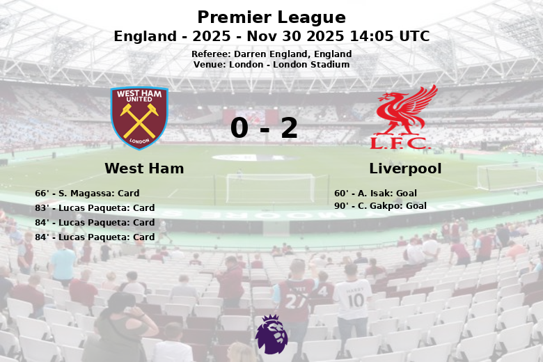 En ce qui concerne les statistiques, Liverpool a eu 9 tirs, dont 5 cadrés, tandis que West Ham en a tenté 7, aucun n’étant cadré. West Ham a eu 7 corners contre seulement 2 pour Liverpool. L’arbitre, Darren England, a sifflé 14 fautes pour Liverpool et 12 pour West Ham. Le match, joué le 30 novembre 2025, s’est déroulé dans une ambiance survoltée au London Stadium.