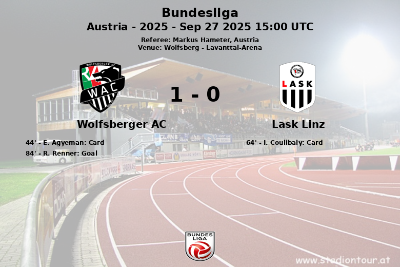 Wolfsberg, Autriche – Lors d’un match comptant pour la huitième journée de la Bundesliga autrichienne, le Wolfsberger AC a remporté une courte victoire sur le LASK Linz à la Lavanttal-Arena. Le match, disputé le 27 septembre 2025, a été marqué par son intensité et son équilibre.