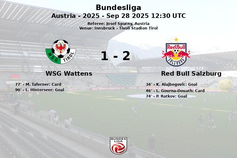 Innsbruck, Autriche – Le Red Bull Salzbourg a remporté la victoire lors de sa visite au WSG Wattens au Tivoli Stadion Tirol, lors d’un match comptant pour la 8e journée de la Bundesliga autrichienne. Le match, disputé sous l’œil attentif de l’arbitre Josef Spurny, s’est terminé par un score qui reflète la domination de Salzbourg dans les moments clés.