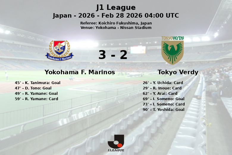 Yokohama, Japon – Lors d’un match disputé au Nissan Stadium, Yokohama F. Marinos a battu Tokyo Verdy lors d’un match comptant pour la quatrième journée de la J1 League. Le match, arbitré par Koichiro Fukushima, a été témoin d’une lutte intense au milieu de terrain et de plusieurs cartons jaunes.