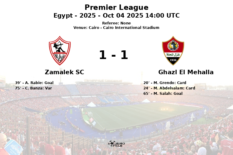 Le match est resté tendu jusqu’à la fin, avec un but refusé à Zamalek à la 75e minute à C. Banza pour hors-jeu après examen de la VAR. Ghazl El Mehalla, malgré sa possession inférieure (34 %) et une différence notable de tirs cadrés (3 contre 4), a fait preuve d’efficacité et de solidité défensive, frustrant les tentatives de Zamalek. Le match s’est terminé avec Zamalek commettant 6 fautes et Ghazl El Mehalla 14. Les deux équipes ont terminé sans carton rouge.
