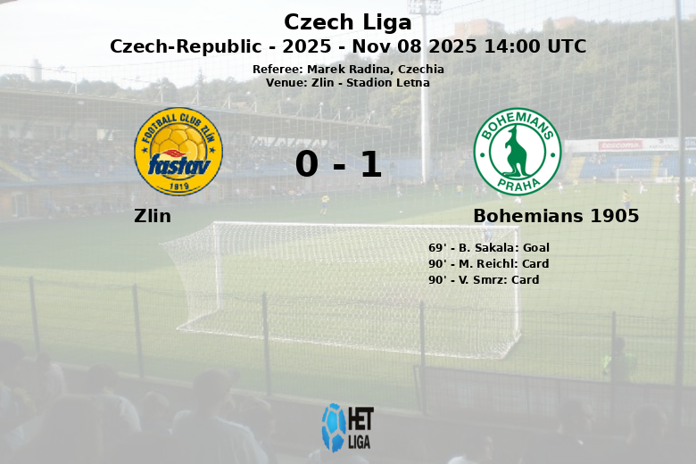 Zlin, République Tchèque – Dans un match animé qui s’est déroulé au Stadion Letna, Bohemians 1905 a réussi à vaincre Zlin sur le score de 1-0. Le match, correspondant à la 15e journée de la Czech Liga, a été arbitré par Marek Radina.