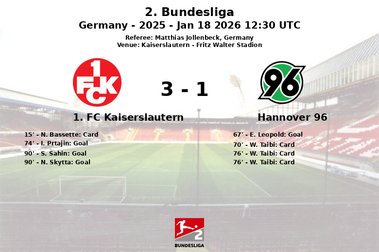 Final Score: 1. FC Kaiserslautern 3 – Hannover 96 1