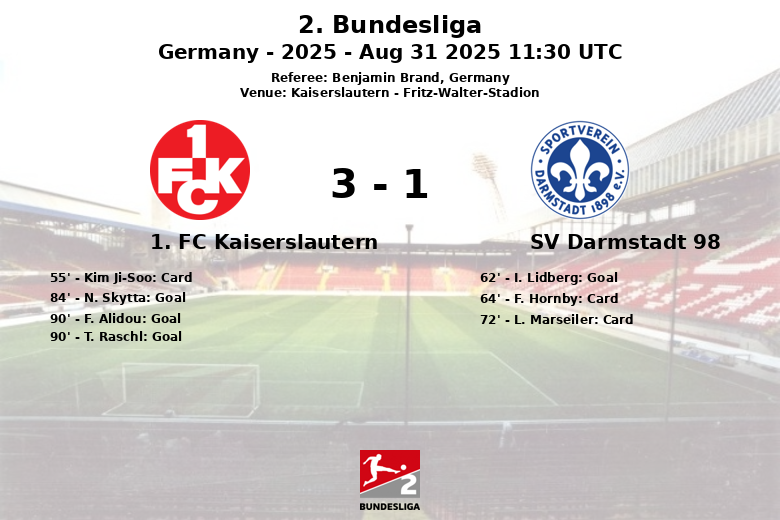 Kaiserslautern, Germany – In a vibrant match held at the Fritz-Walter-Stadion, 1. FC Kaiserslautern staged a spectacular comeback to defeat SV Darmstadt 98. The match, valid for the fourth round of the 2. Bundesliga, kept fans on the edge of their seats until the very last minute.