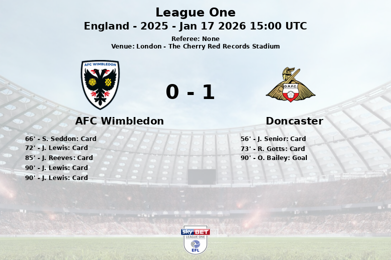 AFC Wimbledon vs Doncaster Jan 17 2026 15:00 UTC