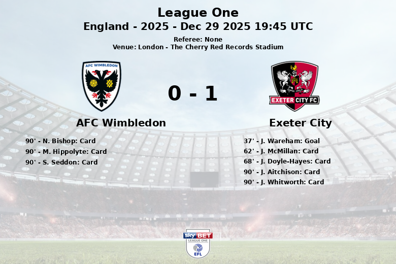 AFC Wimbledon vs Exeter City Dec 29 2025 19:45 UTC