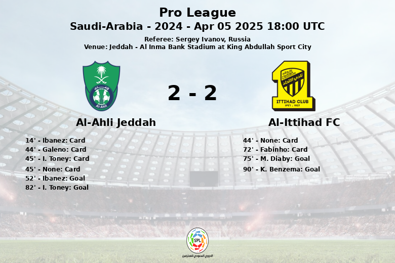 The game was characterized by high tension, reflected in the accumulation of yellow cards: four for Al-Ahli Jeddah (Ibanez, Galeno, I. Toney and one unnamed player) and two for Ittihad FC (one unnamed player and Fabinho).