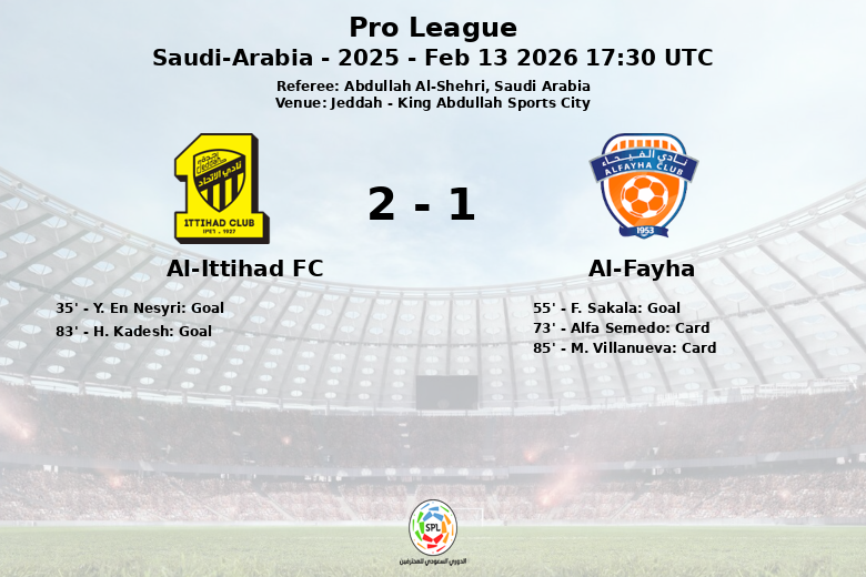 Home Matches Al-Ittihad FC vs Al-Fayha Feb 13 2026 17:30 UTC