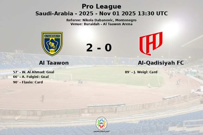 The match was also marked by intensity, reflected in the 9 fouls committed by Al-Qadisiyah and 4 by Al Taawon. J. Weigl of Al-Qadisiyah and Flavio of Al Taawon received yellow cards in the final minutes.