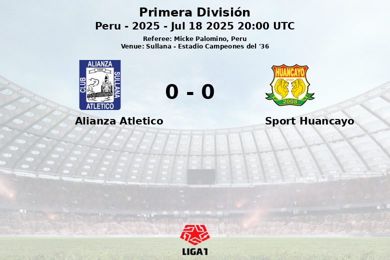 Sullana, Peru – In a tightly contested match at the Estadio Campeones del ’36, Alianza Atletico and Sport Huancayo failed to find the back of the net, ending the game in a 0-0 draw. The match, part of the first round of the Clausura of the Peruvian Primera Division, was marked by a fierce battle in midfield.