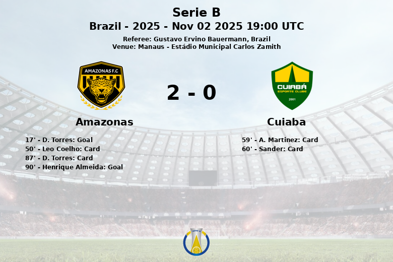 The second half continued with a similar rhythm, with both teams seeking to impose their game. The match was interrupted by several fouls and cautions. Amazonas received two yellow cards, one for Leo Coelho and another for D. Torres, while Cuiabá also accumulated two cards for A. Martinez and Sander. The home team secured the victory in the 90th minute with a goal from Henrique Almeida, assisted by Erick Varao. Amazonas had 7 corner kicks, while Cuiabá had none. In total, Amazonas committed 12 fouls, while Cuiabá committed 13.