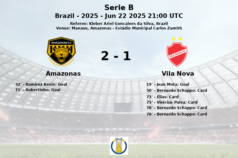 The match began with Vila Nova taking the lead in the 19th minute thanks to a penalty goal converted by Jean Mota. However, Amazonas reacted and managed to equalize the score in the 32nd minute with a goal by Ramirez Kevin, assisted by Thomas Luciano.