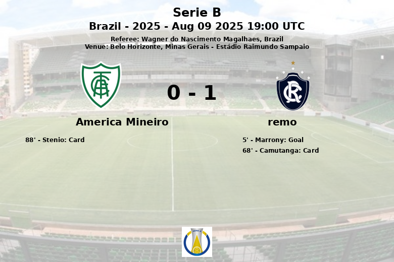 Belo Horizonte, Minas Gerais – In a match held at the Estádio Raimundo Sampaio, Remo secured an important victory against América Mineiro on matchday 21 of the Brazilian Serie B. The encounter, officiated by Wagner do Nascimento Magalhaes, was decided early on with a penalty goal by Marrony in the 5th minute, after a foul committed on himself.