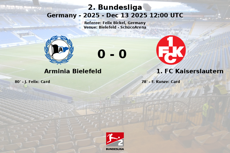 Bielefeld, Germany – In a match played at the SchücoArena, Arminia Bielefeld and 1. FC Kaiserslautern drew in a game marked by Bielefeld’s territorial dominance and Kaiserslautern’s defensive solidity. The match, corresponding to matchday 16 of the 2. Bundesliga, saw Bielefeld control 73% of possession, generating 15 shots, although only 3 managed to be directed at the rival goal. Their insistence resulted in 9 corner kicks. Kaiserslautern, for their part, opted for a more direct game and focused on defense, with only 4 total shots (1 on goal) and 4 corners. The intensity of the match was reflected in the 18 fouls committed by Bielefeld and the 10 by Kaiserslautern, who also saw F. Kunze receive a yellow card in the 78th minute, while J. Felix from Arminia Bielefeld was booked at minute 80. Despite the dominance and opportunities generated by Bielefeld, Kaiserslautern managed to keep their goal clean and secure a valuable point away from home, in a match officiated by Felix Bickel.