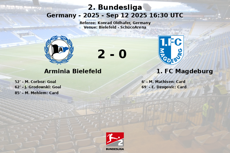 Despite Magdeburg dominating possession with 58%, it was Arminia who capitalized on their chances. M. Corboz opened the scoring in the 52nd minute, assisted by J. Grodowski, and the latter extended the lead ten minutes later, thanks to a pass from M. Mehlem.