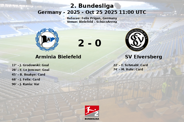 Arminia Bielefeld took the lead in the 17th minute thanks to a goal by J. Grodowski, assisted by T. Momuluh. However, SV Elversberg reacted and found the equalizer in the 28th minute thanks to an own goal by F. Le Joncour.