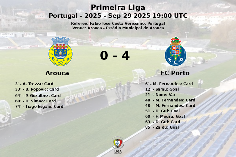 Arouca tried to respond, but the Porto defense remained solid. Zaidu sealed the victory for the visitors with a goal in the 85th minute, assisted by A. Costa.