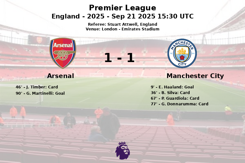 Despite Arsenal’s dominance in ball possession (67% compared to City’s 33%), the home team struggled to translate that possession into clear goal-scoring opportunities for much of the match. Manchester City’s defense remained solid, frustrating the “Gunners'” attempts. The match tensed up with yellow cards for B. Silva and coach P. Guardiola of Manchester City, and for J. Timber of Arsenal, in addition to another for the Manchester City goalkeeper, Donnarumma.