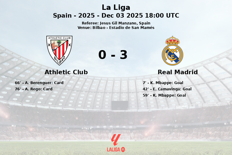 The match began with Real Madrid displaying superior possession, reaching 62% compared to Athletic Club’s 38%. The *Merengue* pressure soon paid off, with an early goal from Kylian Mbappé in the 7th minute, assisted by Trent Alexander-Arnold, opening the score.
