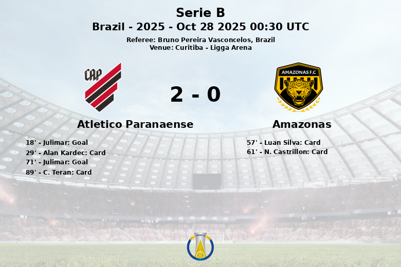 In the second half, Atlético Paranaense sealed the victory with another goal from Julimar in the 71st minute, this time assisted by Leozinho. Amazonas tried to react, but encountered a solid defense and an alert goalkeeper. The match was characterized by a high number of fouls, 19 by Atlético Paranaense and 8 by Amazonas, and the tension on the field was reflected in the yellow cards shown to players from both teams. In the end, Atlético Paranaense’s superiority prevailed, consolidating their position in Serie B.