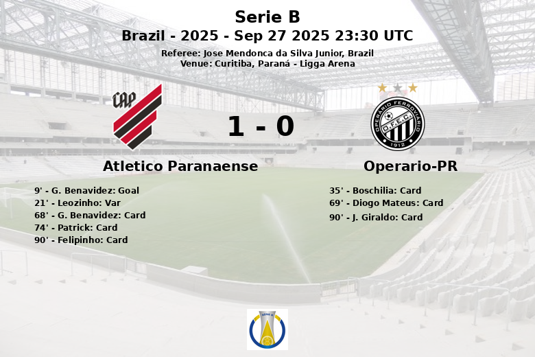 Although Operario-PR dominated possession with 64% compared to Atlético Paranaense’s 36%, they failed to capitalize on their superiority in play. Operario-PR attempted 15 shots, only 5 of which were on target, while Atlético Paranaense, with less possession, managed 7 shots, 3 directed at the goal. Atlético Paranaense’s defense remained solid, frustrating Operario-PR’s attempts to equalize. The match ended with a narrow victory for Atlético Paranaense, who add valuable points in Serie B.