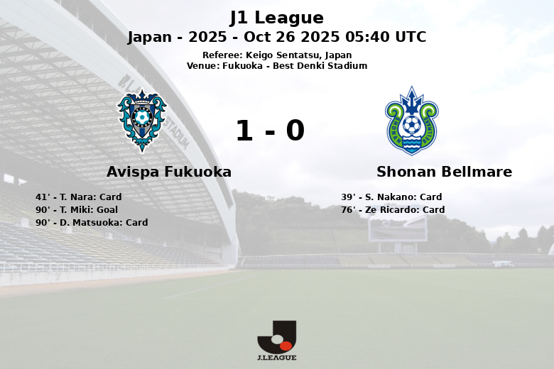 Fukuoka, Japan – In a hard-fought match at the Best Denki Stadium, Avispa Fukuoka clinched a narrow 1 to 0 victory over Shonan Bellmare. The game, part of the J1 League’s 35th round, was marked by intensity and midfield battles.